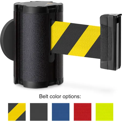 Lavi Industries Magnetic Retractable Belt Barrier, Black Wrinkle Case W/10' Black/Yellow Belt