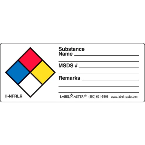 LabelMaster®H-NFRLR NFPA®Write-On Substance Name Label, 3 3/8" x 1 3/8", Paper, 500/Roll