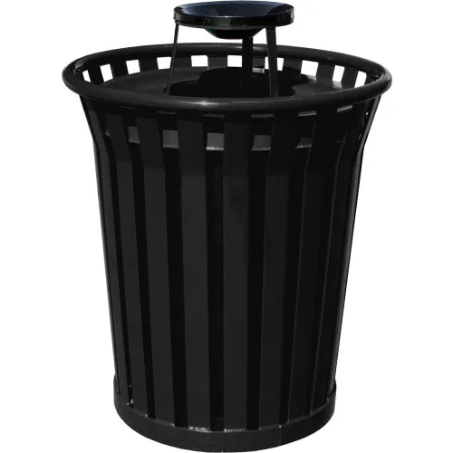 Witt Industries Outdoor Slatted Metal Trash Can With Ash Top, 36 Gallon, Black