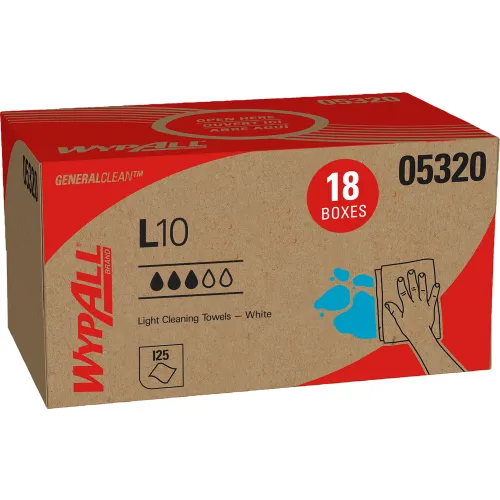 WypAll L10 Utility Wipes, 9 x 10-1/2, Pop-Up Box, White, 125/Box, 18 Boxes/Carton - 05320
