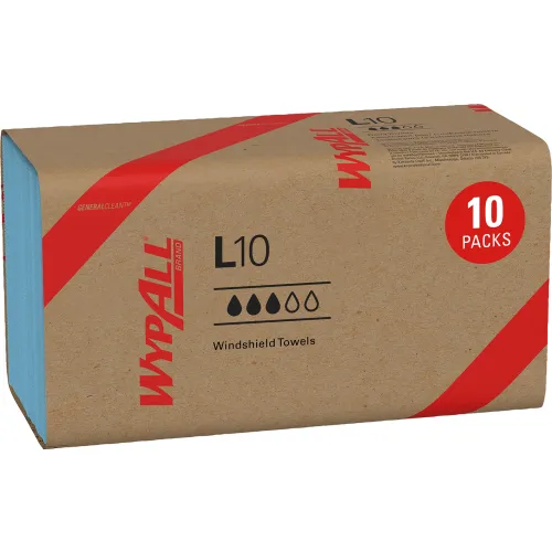 WypAll L10 Windshield Towels, 9-1/10 x 10-1/4, 1-Ply, L-Blue, 224/Pack, 10 Packs/Carton - KCC 05123