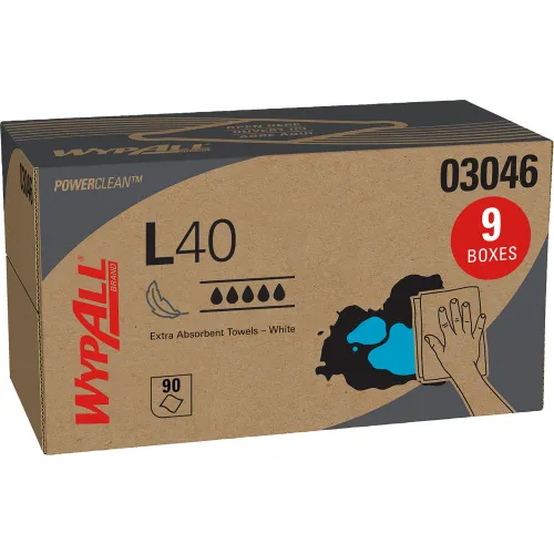 WypAll L40 Wipers, 10-4/5 x 10, Pop-Up Box, White, 90/Box, 9 Boxes/Carton - 03046