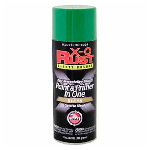 X-O Rust 12 oz. Aerosol Can Safety Colors Paint & Primer In One, Safety Green, Flat - 144947