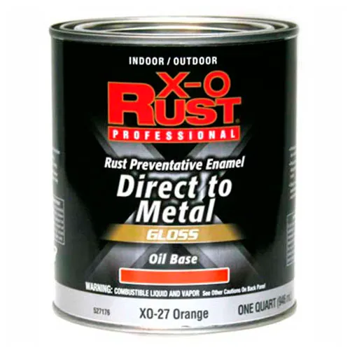 X-O Rust Oil Base DTM Enamel, Gloss Finish, Orange, Quart - 527176