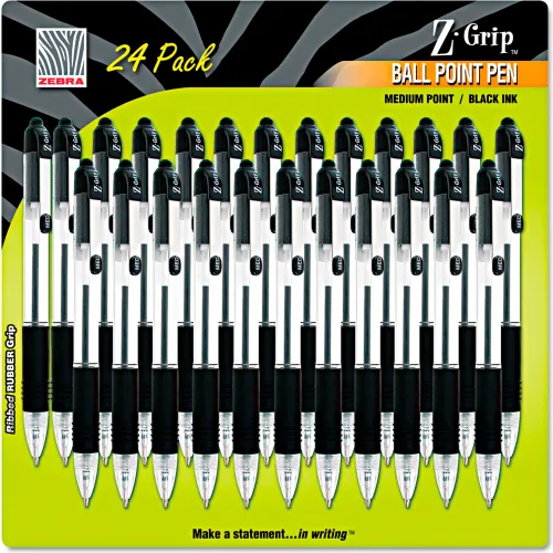 Zebra Z-Grip Retractable Ballpoint Pen, Black Ink, Medium, 24/Pack