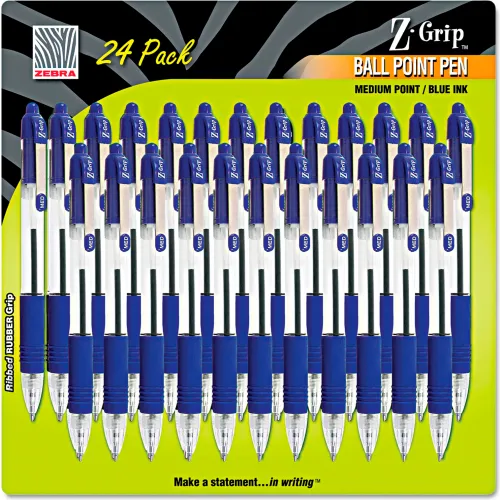 Zebra Z-Grip Retractable Ballpoint Pen, Blue Ink, Medium, 24/Pack