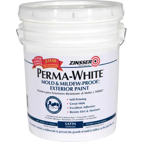 Zinsser® PERMA-WHITE® Mold & Mildew-Proof™ Exterior Paint, White 5 Gallon Pail - 3130