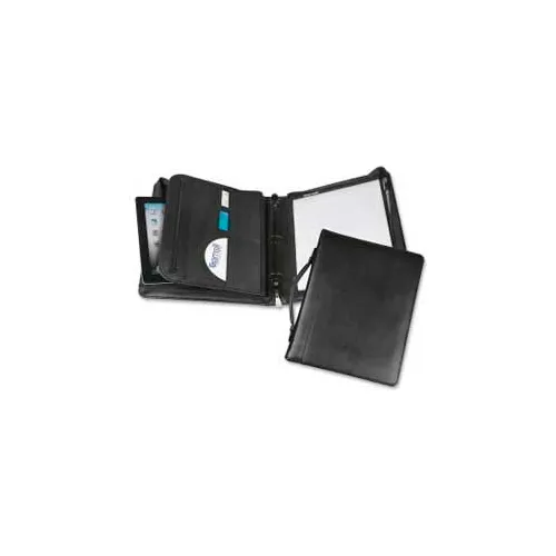 Samsill® Regal™ Zipper Binder with Handle, 8-1/2" x 11", Leather Cover, Black
