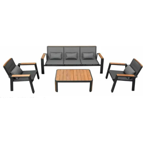 Babmar Zurich 4 Piece Sofa Set, Gray Mesh, Painted Teak Table Top, Charcoal Gray Frame